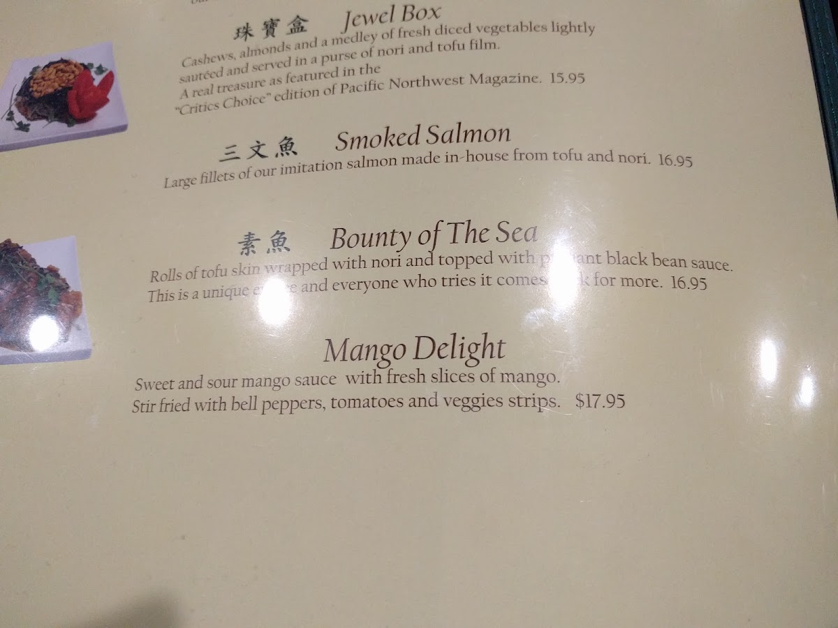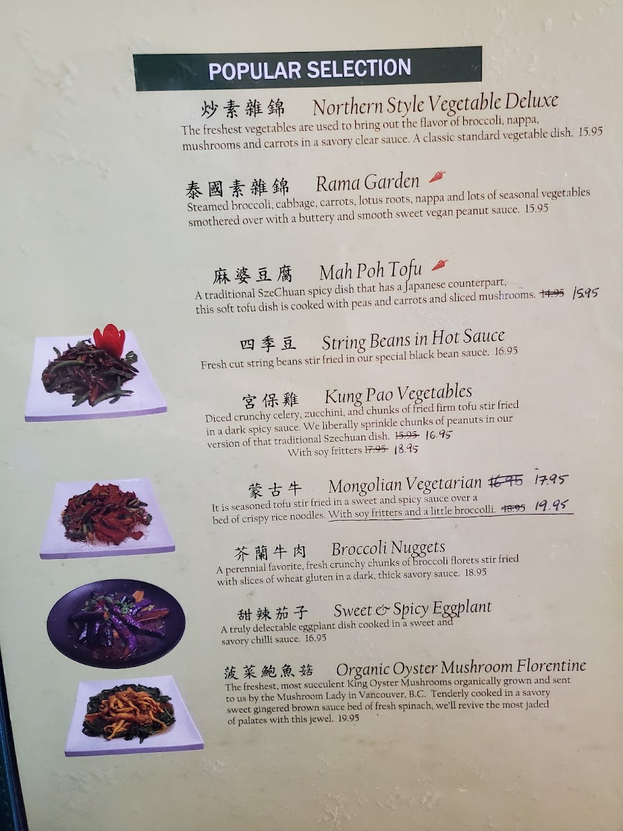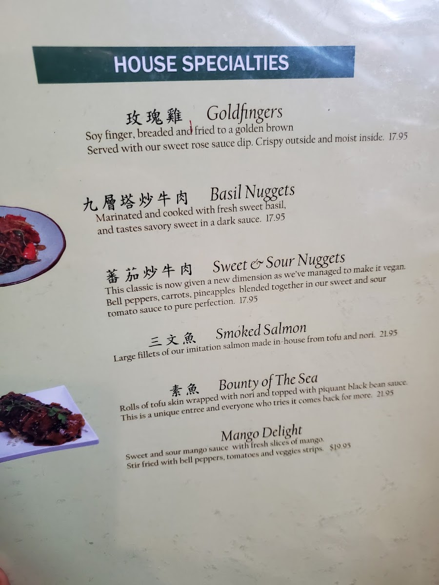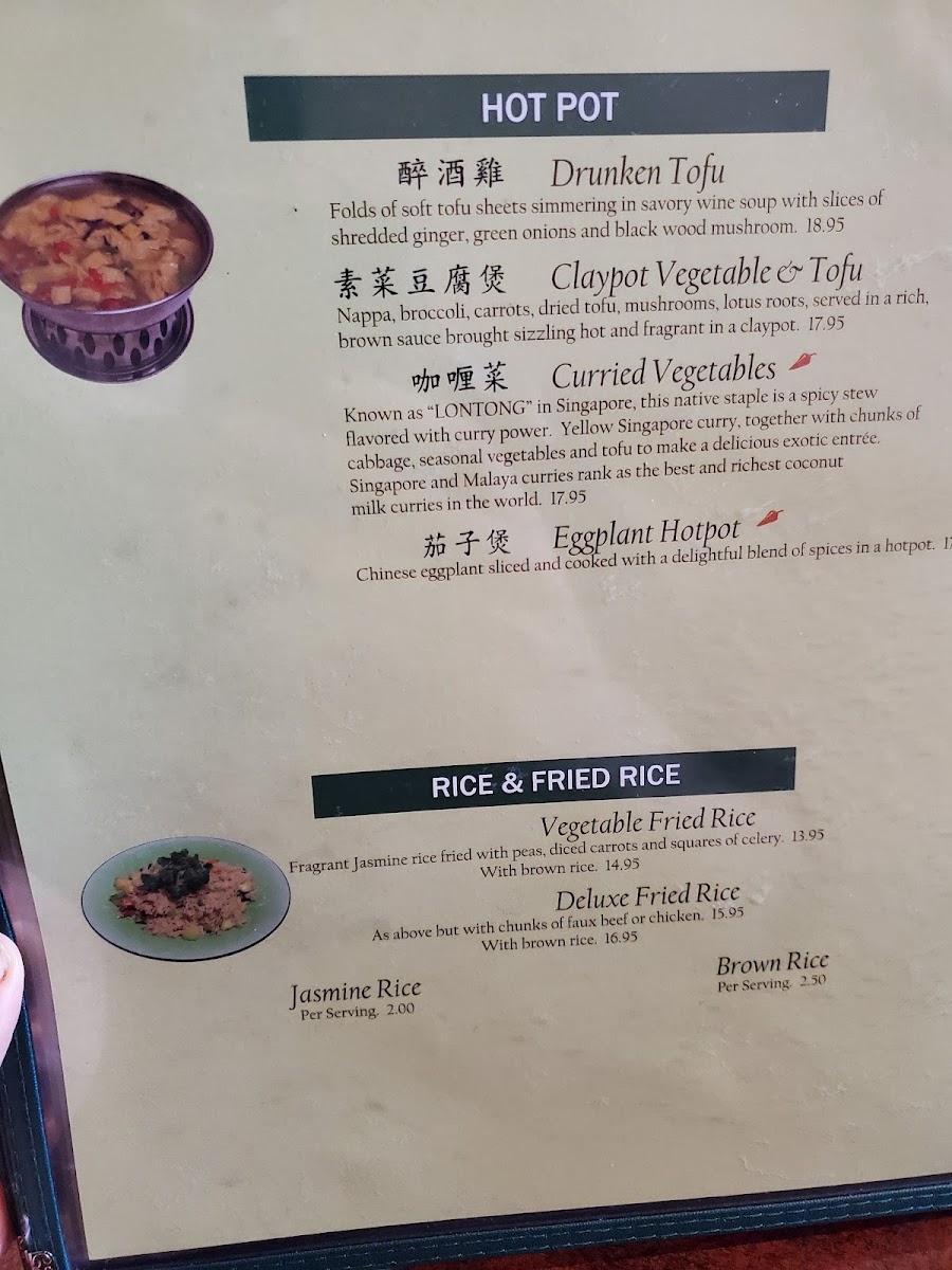 Rolls of tofu skin wrapped with nori and topped with piquant black bean sauce.This is a unique entree and everyone who tries it comes back for more.