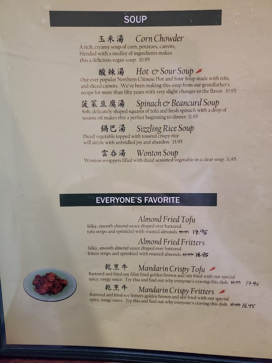 Our ever popular Northern Chinese Hot and Sour Soup made with tofu, black fungus (wood ear), daylily buds, scallions and sliced carrots. We've been making this soup from our grandfather's recipe for more than fifty years with very slight changes to the flavor.
